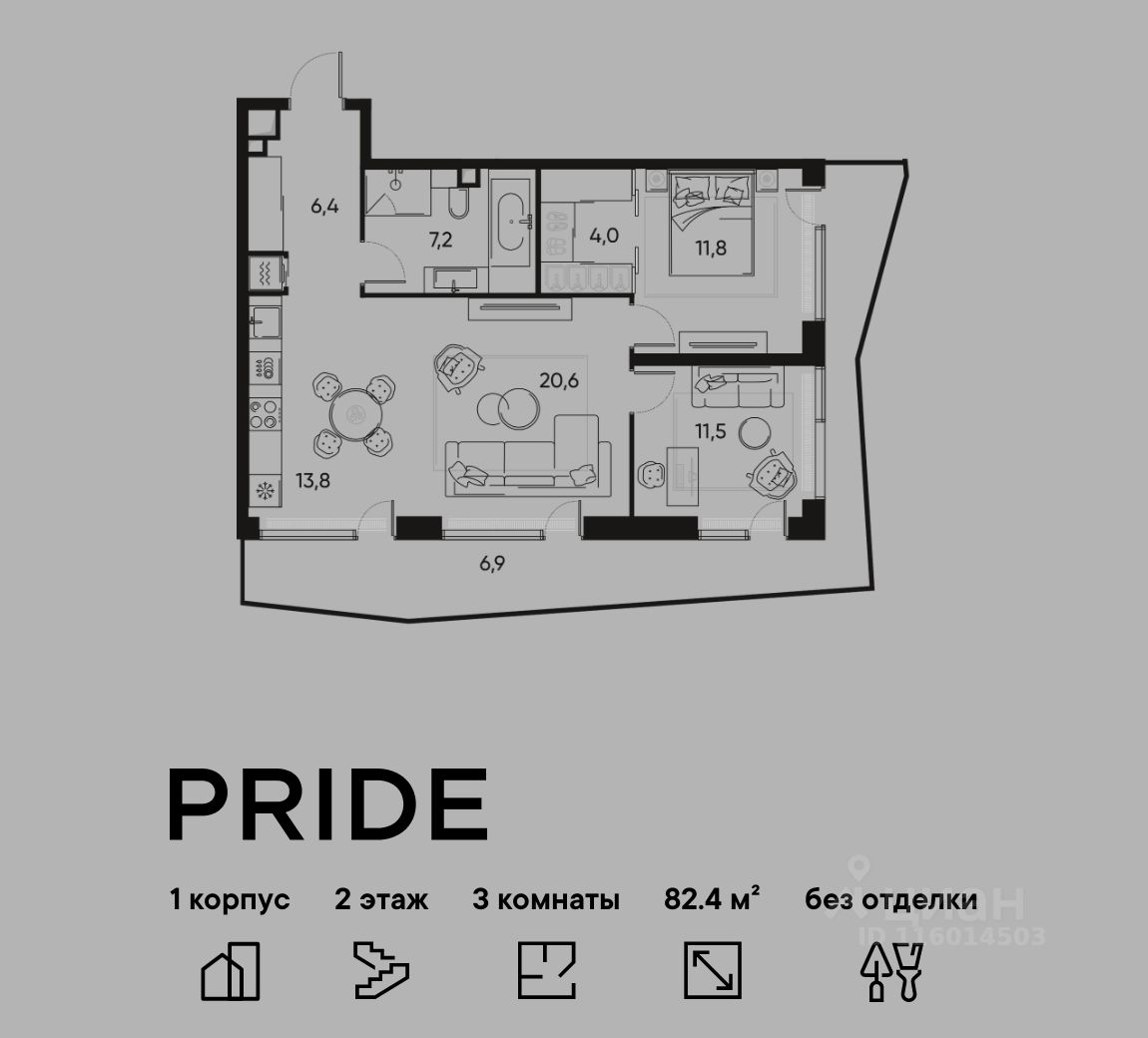 В премиальном жилом квартале PRIDE продается 3-комнатная квартира в 1 корпусе, на 2 этаже, в секции 10. Её общая площадь составляет 82.4 м². Пространство включает 2 уютные спальни 10,8 м², 12,5 м², просторную кухню-гостиную 32,9 м² и ванную комнату 7,9 м².