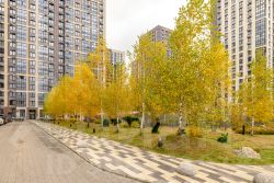 Охраняемый двор представляет собой парк с аллеями, беседками и площадками для йоги, зелёными холмами и альпийскими лугами. На территории реализован проект комплексного освещения и архитектурной подсветки фасадов.