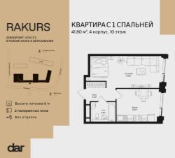 Продаётся 1-комнатная квартира 41.80 м² в жилом комплексе Ракурс. Квартиру отличают панорамное остекление, потолки [ceiling_height] м, улучшенная шумо и воздухоизоляция. Дом сдаётся в 1 квартале 2028 года, продажи проходят через эскроусчета. Подземный паркинг, коворкинг, закрытая благоустроенная территория с фонтаном и артобъектами. Гибкие условия покупки.