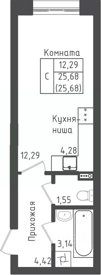 Продаётся студия в строящемся доме (Дом 1), срок сдачи: I-кв. 2026, общей площадью 25.68 кв.м., на 1 этаже. Квартал жилой застройки "Зеленый Оазис-Город"