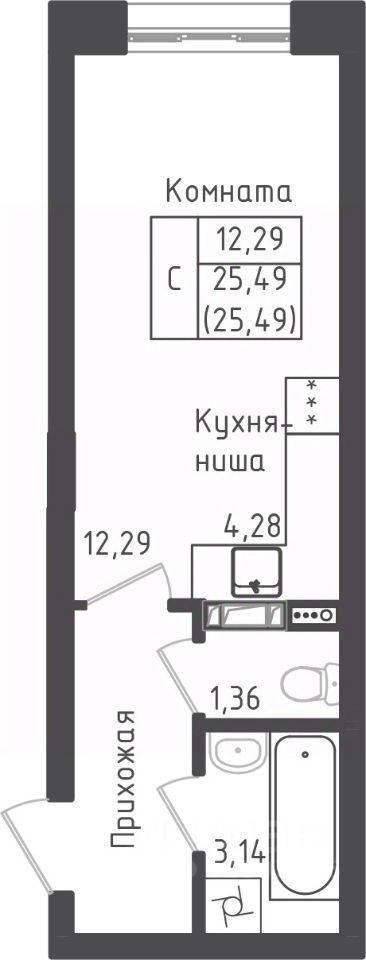 Продаётся студия в строящемся доме (Дом 1), срок сдачи: I-кв. 2026, общей площадью 25.49 кв.м., на 4 этаже. Квартал жилой застройки "Зеленый Оазис-Город"