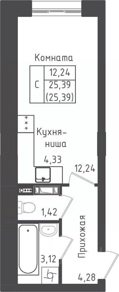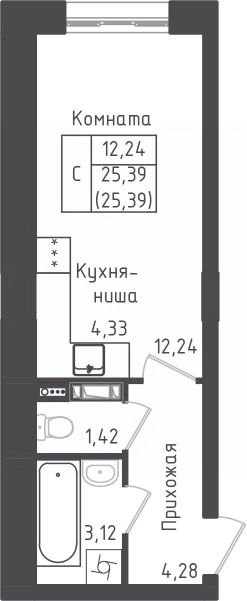 Студия, 25,39 м²