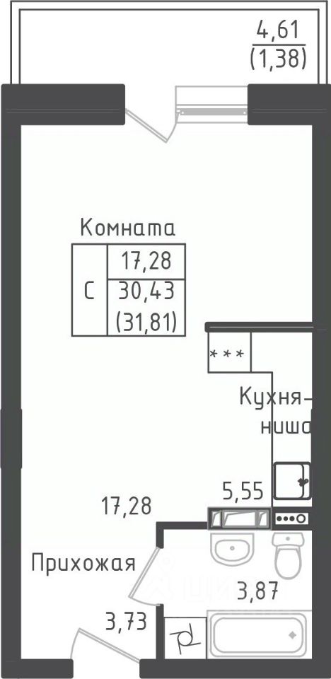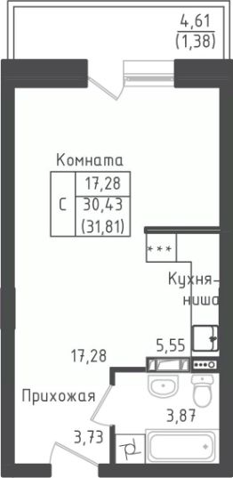 Продаётся студия в строящемся доме (Дом 1), срок сдачи: I-кв. 2026, общей площадью 31.53 кв.м., на 5 этаже. Квартал жилой застройки "Зеленый Оазис-Город"
