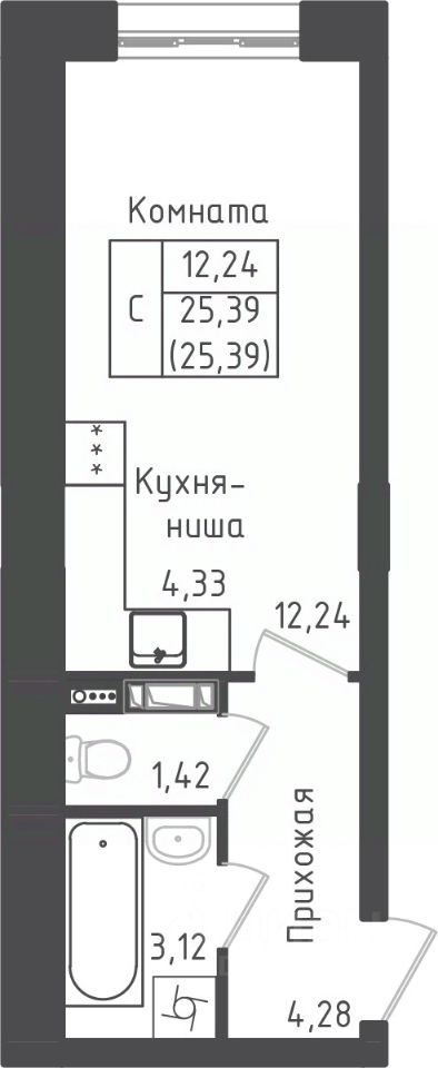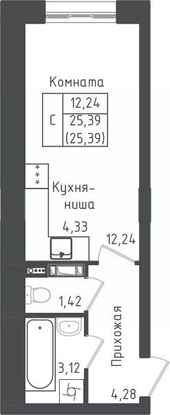 Продаётся студия в строящемся доме (Дом 1), срок сдачи: I-кв. 2026, общей площадью 25.39 кв.м., на 2 этаже. Квартал жилой застройки "Зеленый Оазис-Город"