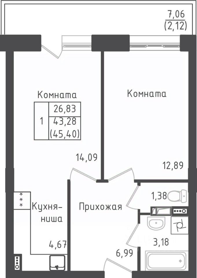 Продаётся 1-комнатная квартира в строящемся доме (Дом 1), срок сдачи: I-кв. 2026, общей площадью 44.97 кв.м., на 2 этаже. Квартал жилой застройки "Зеленый Оазис-Город"
