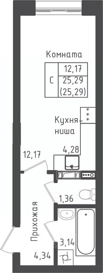 Продаётся студия в строящемся доме (Дом 1), срок сдачи: I-кв. 2026, общей площадью 25.29 кв.м., на 2 этаже. Квартал жилой застройки "Зеленый Оазис-Город"