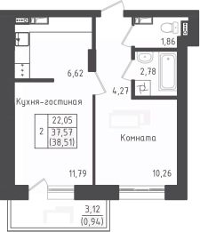 Продаётся 1-комнатная квартира в строящемся доме (Дом 1), срок сдачи: I-кв. 2026, общей площадью 38.51 кв.м., на 4 этаже. Квартал жилой застройки "Зеленый Оазис-Город"