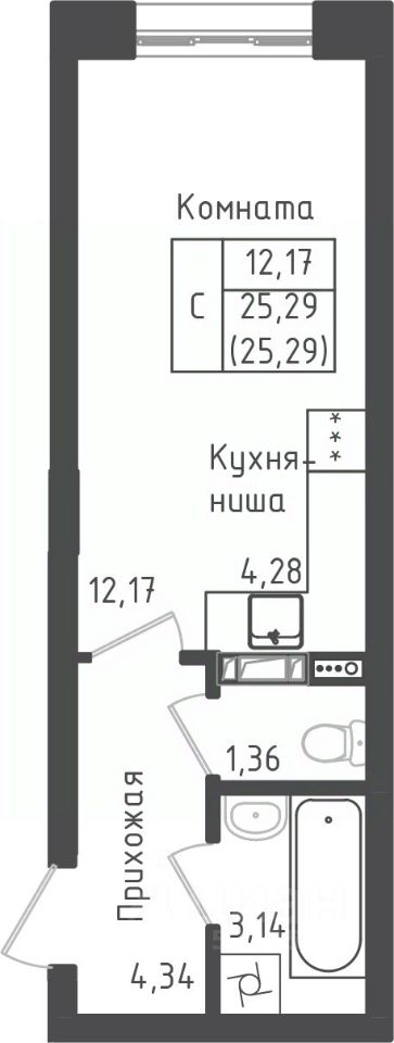 Студия, 25,29 м²