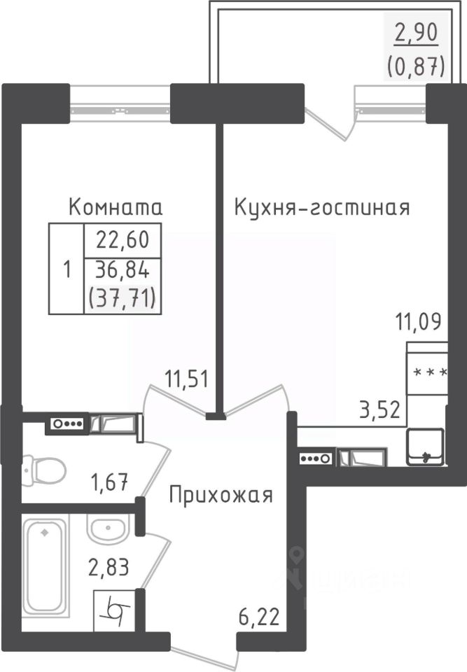 Продаётся 1-комнатная квартира в строящемся доме (Дом 1), срок сдачи: I-кв. 2026, общей площадью 37.71 кв.м., на 2 этаже. Квартал жилой застройки "Зеленый Оазис-Город"
