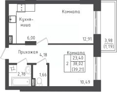 Продаётся 1-комнатная квартира в строящемся доме (Дом 1), срок сдачи: I-кв. 2026, общей площадью 38.97 кв.м., на 1 этаже. Квартал жилой застройки "Зеленый Оазис-Город"