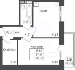 Продаётся 1-комнатная квартира в строящемся доме (Дом 1), срок сдачи: I-кв. 2026, общей площадью 38.62 кв.м., на 2 этаже. Квартал жилой застройки "Зеленый Оазис-Город"