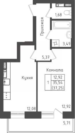 1-комн. квартира, 36,89 м²