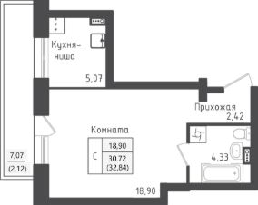 Продаётся студия в строящемся доме (Дом 1), срок сдачи: I-кв. 2026, общей площадью 32.84 кв.м., на 1 этаже. Квартал жилой застройки "Зеленый Оазис-Город"