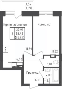 Продаётся 1-комнатная квартира в строящемся доме (Дом 1), срок сдачи: I-кв. 2026, общей площадью 39.52 кв.м., на 1 этаже. Квартал жилой застройки "Зеленый Оазис-Город"