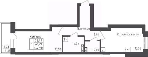 Продаётся 1-комнатная квартира в строящемся доме (Дом 1), срок сдачи: I-кв. 2026, общей площадью 42.19 кв.м., на 2 этаже. Квартал жилой застройки "Зеленый Оазис-Город"