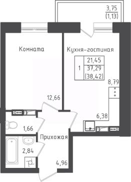 Продаётся 1-комнатная квартира в строящемся доме (Дом 1), срок сдачи: I-кв. 2026, общей площадью 38.18 кв.м., на 2 этаже. Квартал жилой застройки "Зеленый Оазис-Город"