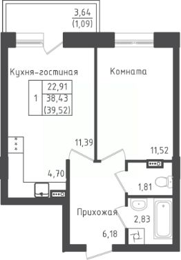 Продаётся 1-комнатная квартира в строящемся доме (Дом 1), срок сдачи: I-кв. 2026, общей площадью 39.52 кв.м., на 5 этаже. Квартал жилой застройки "Зеленый Оазис-Город"
