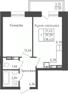 Продаётся 1-комнатная квартира в строящемся доме (Дом 1), срок сдачи: I-кв. 2026, общей площадью 38.18 кв.м., на 5 этаже. Квартал жилой застройки "Зеленый Оазис-Город"