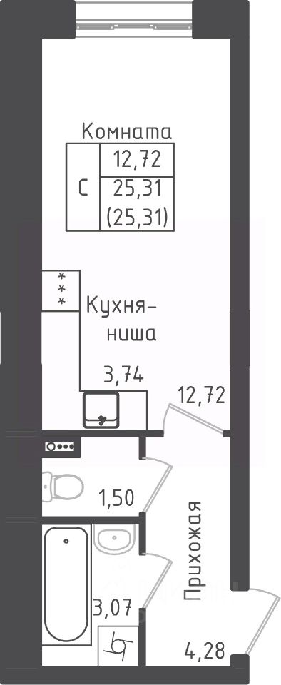 Студия, 25,31 м²