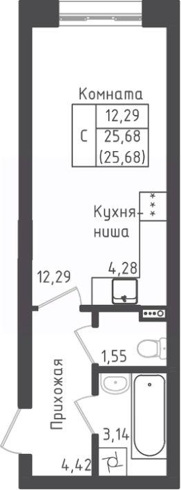 Студия, 25,68 м²