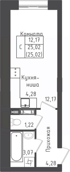 Продаётся студия в строящемся доме (Дом 1), срок сдачи: I-кв. 2026, общей площадью 25.02 кв.м., на 2 этаже. Квартал жилой застройки "Зеленый Оазис-Город"