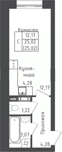 Продаётся студия в строящемся доме (Дом 1), срок сдачи: I-кв. 2026, общей площадью 25.02 кв.м., на 3 этаже. Квартал жилой застройки "Зеленый Оазис-Город"