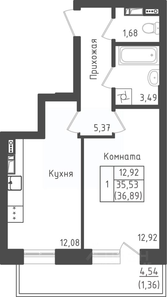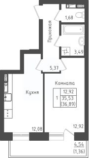 Продаётся 1-комнатная квартира в строящемся доме (Дом 1), срок сдачи: I-кв. 2026, общей площадью 36.89 кв.м., на 2 этаже. Квартал жилой застройки "Зеленый Оазис-Город"