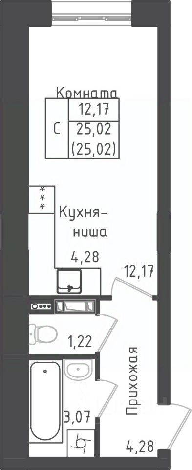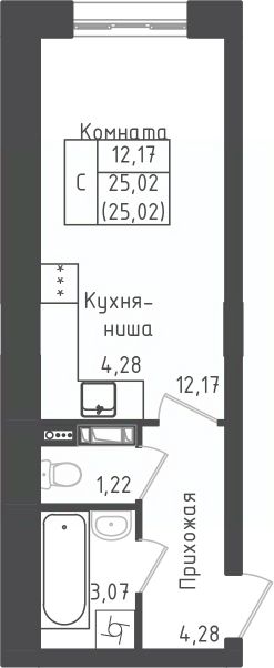Студия, 25,02 м²