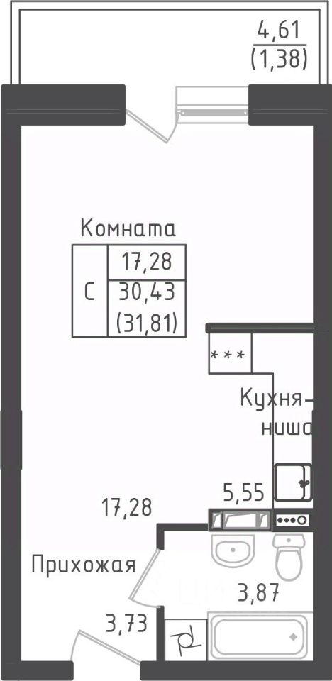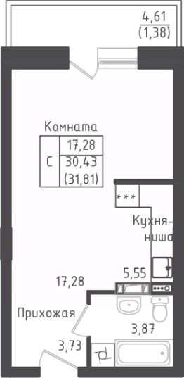 Продаётся студия в строящемся доме (Дом 1), срок сдачи: I-кв. 2026, общей площадью 31.53 кв.м., на 4 этаже. Квартал жилой застройки "Зеленый Оазис-Город"