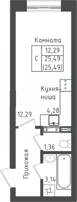 Продаётся студия в строящемся доме (Дом 1), срок сдачи: I-кв. 2026, общей площадью 25.49 кв.м., на 5 этаже. Квартал жилой застройки "Зеленый Оазис-Город"