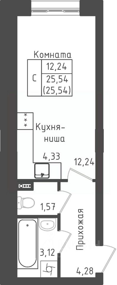 Продаётся студия в строящемся доме (Дом 1), срок сдачи: I-кв. 2026, общей площадью 25.54 кв.м., на 1 этаже. Квартал жилой застройки "Зеленый Оазис-Город"