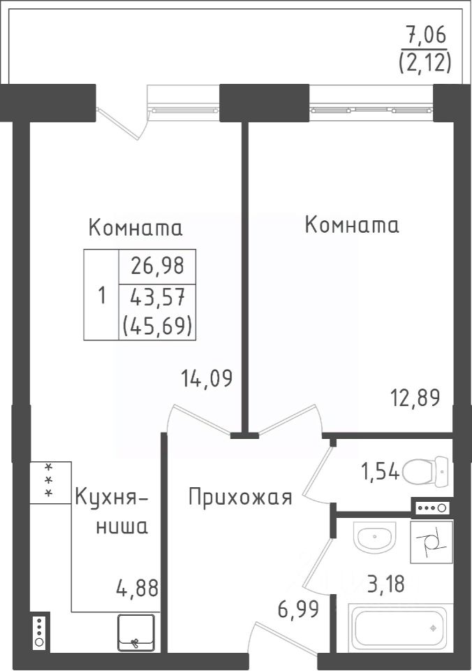 Продаётся 1-комнатная квартира в строящемся доме (Дом 1), срок сдачи: I-кв. 2026, общей площадью 45.26 кв.м., на 1 этаже. Квартал жилой застройки "Зеленый Оазис-Город"