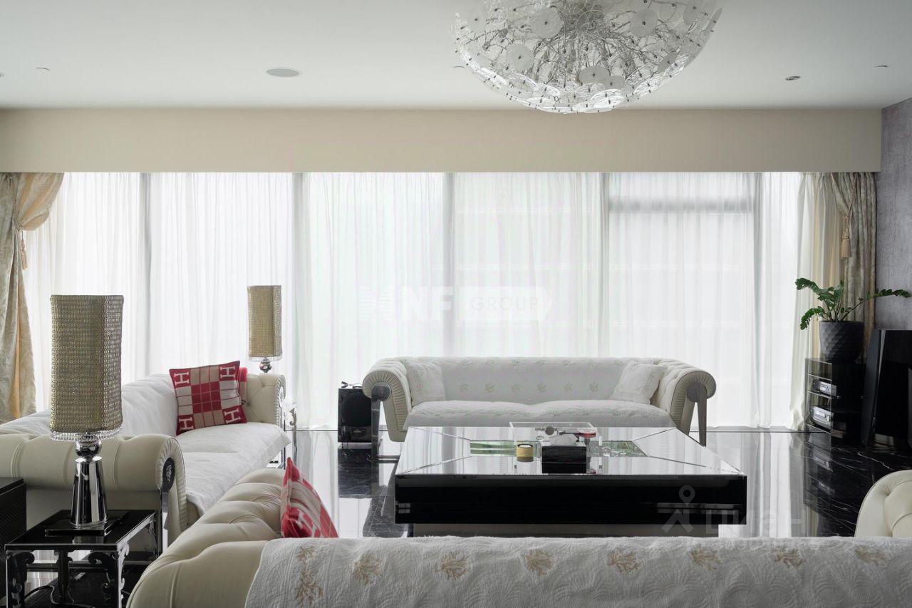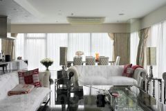 Планировка: гостиная-столовая с камином зоной и зоной кухни, мастер-спальня с будуаром, ванной комнатой и двумя гардеробными, 2 спальни с собственными ванными комнатами (одна из них с гардеробной), кабинет, гостевой санузел, постирочная.