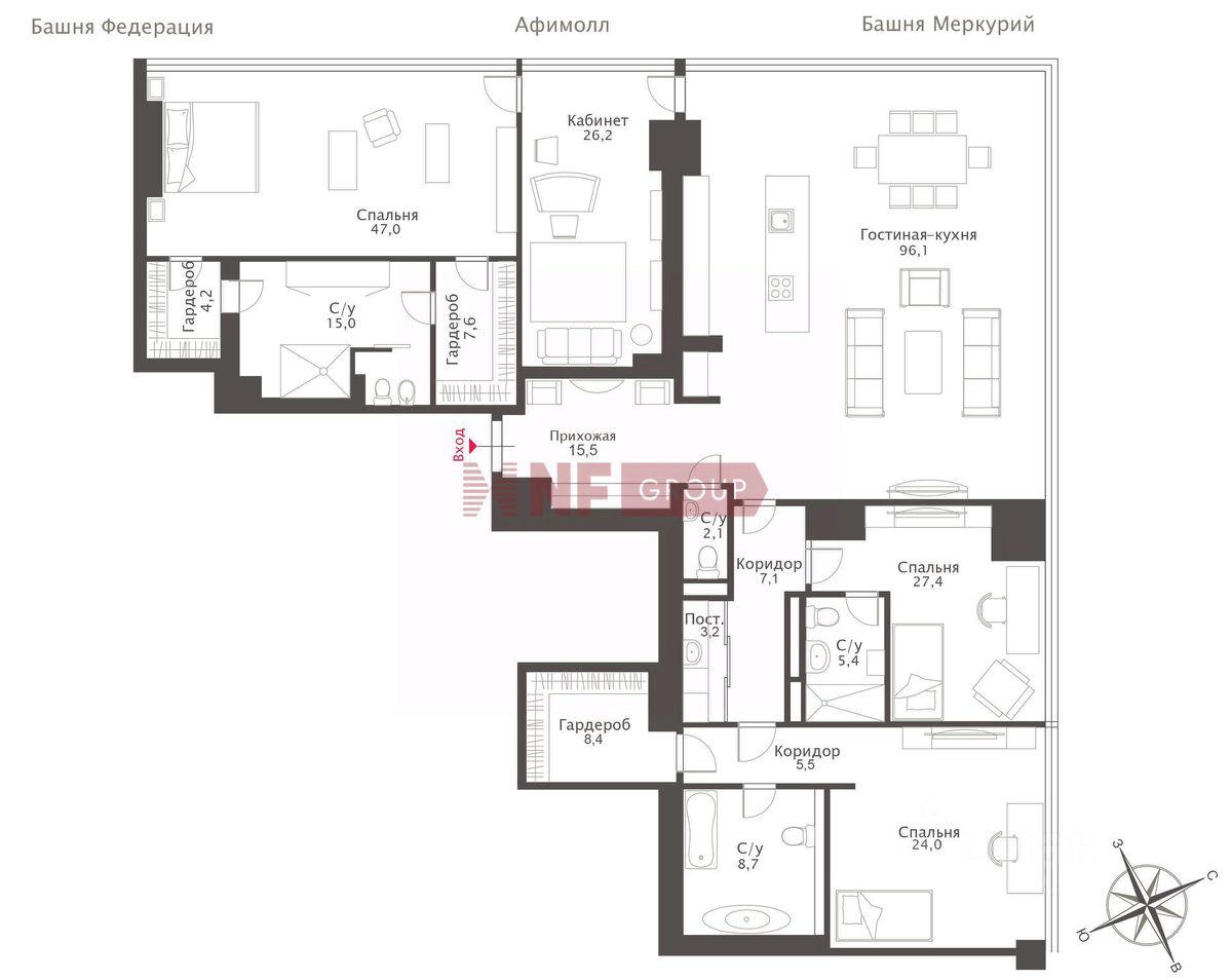 Лот: 84564. В продаже просторный видовой апартамент с камином на 57-м этаже башни "Москва" комплекса "Город Столиц" в ММДЦ "Москва-Сити".