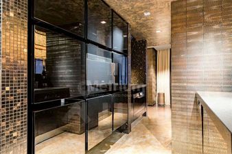 Интерьер квартиры выполнен по эксклюзивному авторскому проекту. В отделке использованы качественные натуральные материалы (редкие породы дерева, мрамор, натуральный камень). Квартира полностью укомплектована мебелью, оборудована современной бытовой техникой от ведущих мировых производителей и готова к проживанию. Функциональная планировка включает в себя кухню-гостиную, мастер спальню с собственной ванной и гардеробной, детская спальня с ванной комнатой, гостевой санузел.