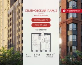 Продается 1-к квартира 41,9 кв.м. в ЖК "Семеновский парк 2" на 8-м этаже 12 этажного дома.