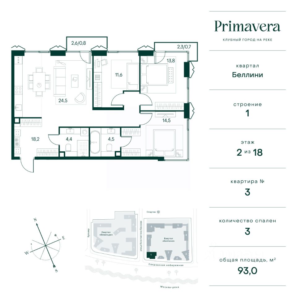 Клубный город на реке Primavera — это респектабельный проект премиум-класса на первой береговой линии Москвы-реки в экологически безупречном районе — Покровское-Стрешнево. Под панорамными окнами квартир расположился собственный экопарк, площадью 12 гектаров с сетью прогулочных дорожек, оборудованный детскими и спортивными площадками, а за ним набережная с собственным пляжем и зонами отдыха. Клубный город на реке Primavera предлагает впечатляющий выбор планировок для любого жизненного сценария: от просторных однокомнатных квартир до пентхаусов и квартир с видовыми террасами или патио. Выбирайте из 120 вариантов эргономичных планировок стандартного и евроформата. В проекте доступны квартиры площадью от 40 до 209 м², в каждой из которых открываются непревзойденные виды на реку, а угол обзора составляет 270 градусов. Из дизайнерских лобби открывается панорамный обзор на зеленый благоустроенный двор. Статусное мебелирование, потолки высотой 6 м и комфортная лаунж-зона отсылают к стилистике высококлассных пятизвездочных отелей. В Primavera есть все, что может предложить мегаполис, здесь все сосредоточено вокруг вас и настроено на ваши желания: - Всестороннее детское развитие в паре шагов от дома: 4 школы, 8 детских садов, развивающие центры с кружками и секциями. - Комфорт мегаполиса на расстоянии приятной прогулки: супермаркеты, кафе, рестораны с верандами на крыше, салоны красоты, аптеки, компании сферы услуг, многофункциональный центр для шоппинга и развлечений. - Умный дом: автоматизированное бесконтактное управление основными системами доступа, инфраструктуры и безопасности через мобильное приложение и специальные метки. Клубный город на реке Primavera выгодно отличается близостью к природе, совмещенной с насыщенной инфраструктурой.