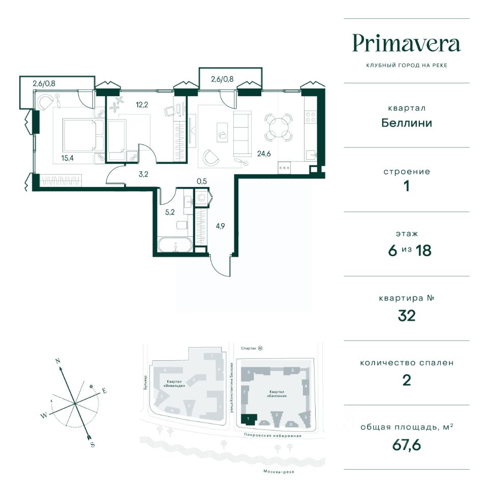 Клубный город на реке Primavera — это респектабельный проект премиум-класса на первой береговой линии Москвы-реки в экологически безупречном районе — Покровское-Стрешнево. Под панорамными окнами квартир расположился собственный экопарк, площадью 12 гектаров с сетью прогулочных дорожек, оборудованный детскими и спортивными площадками, а за ним набережная с собственным пляжем и зонами отдыха. Клубный город на реке Primavera предлагает впечатляющий выбор планировок для любого жизненного сценария: от просторных однокомнатных квартир до пентхаусов и квартир с видовыми террасами или патио. Выбирайте из 120 вариантов эргономичных планировок стандартного и евроформата. В проекте доступны квартиры площадью от 40 до 209 м², в каждой из которых открываются непревзойденные виды на реку, а угол обзора составляет 270 градусов. Из дизайнерских лобби открывается панорамный обзор на зеленый благоустроенный двор. Статусное мебелирование, потолки высотой 6 м и комфортная лаунж-зона отсылают к стилистике высококлассных пятизвездочных отелей. В Primavera есть все, что может предложить мегаполис, здесь все сосредоточено вокруг вас и настроено на ваши желания: - Всестороннее детское развитие в паре шагов от дома: 4 школы, 8 детских садов, развивающие центры с кружками и секциями. - Комфорт мегаполиса на расстоянии приятной прогулки: супермаркеты, кафе, рестораны с верандами на крыше, салоны красоты, аптеки, компании сферы услуг, многофункциональный центр для шоппинга и развлечений. - Умный дом: автоматизированное бесконтактное управление основными системами доступа, инфраструктуры и безопасности через мобильное приложение и специальные метки. Клубный город на реке Primavera выгодно отличается близостью к природе, совмещенной с насыщенной инфраструктурой.