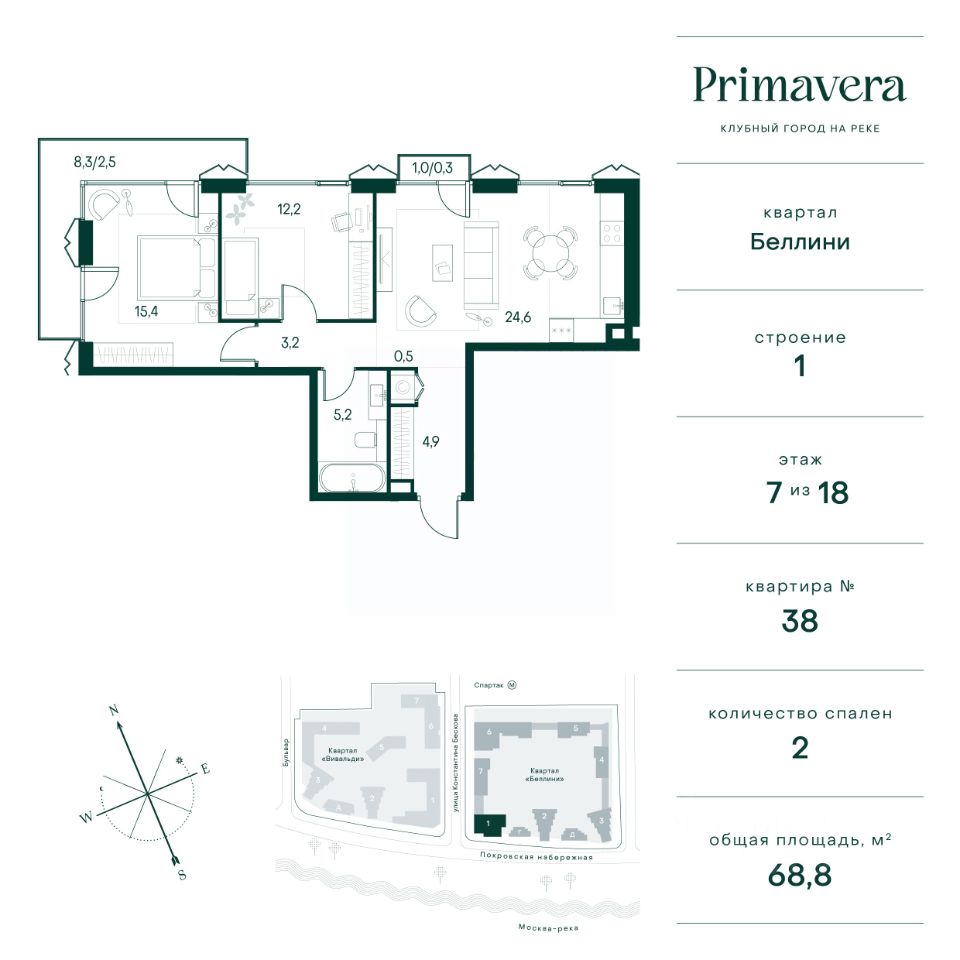 Клубный город на реке Primavera — это респектабельный проект премиум-класса на первой береговой линии Москвы-реки в экологически безупречном районе — Покровское-Стрешнево. Под панорамными окнами квартир расположился собственный экопарк, площадью 12 гектаров с сетью прогулочных дорожек, оборудованный детскими и спортивными площадками, а за ним набережная с собственным пляжем и зонами отдыха. Клубный город на реке Primavera предлагает впечатляющий выбор планировок для любого жизненного сценария: от просторных однокомнатных квартир до пентхаусов и квартир с видовыми террасами или патио. Выбирайте из 120 вариантов эргономичных планировок стандартного и евроформата. В проекте доступны квартиры площадью от 40 до 209 м², в каждой из которых открываются непревзойденные виды на реку, а угол обзора составляет 270 градусов. Из дизайнерских лобби открывается панорамный обзор на зеленый благоустроенный двор. Статусное мебелирование, потолки высотой 6 м и комфортная лаунж-зона отсылают к стилистике высококлассных пятизвездочных отелей. В Primavera есть все, что может предложить мегаполис, здесь все сосредоточено вокруг вас и настроено на ваши желания: - Всестороннее детское развитие в паре шагов от дома: 4 школы, 8 детских садов, развивающие центры с кружками и секциями. - Комфорт мегаполиса на расстоянии приятной прогулки: супермаркеты, кафе, рестораны с верандами на крыше, салоны красоты, аптеки, компании сферы услуг, многофункциональный центр для шоппинга и развлечений. - Умный дом: автоматизированное бесконтактное управление основными системами доступа, инфраструктуры и безопасности через мобильное приложение и специальные метки. Клубный город на реке Primavera выгодно отличается близостью к природе, совмещенной с насыщенной инфраструктурой.