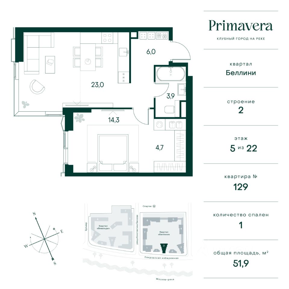 Клубный город на реке Primavera — это современный жилой комплекс премиум-класса, расположенный на первой береговой линии Москвы-реки в экологически чистом районе Покровское-Стрешнево. Под панорамными окнами квартир находится собственный экопарк с продуманной сетью прогулочных дорожек и современными детскими и спортивными площадками. За парком расположена набережная с собственным пляжем и зонами для отдыха. Клубный город на реке Primavera предлагает широкий выбор планировок для различных жизненных сценариев: от просторных однокомнатных квартир до пентхаусов и жилых помещений с террасами и патио. Выберите из 120 вариантов эргономичных планировок стандартного и евроформата. Из каждой квартиры открываются красивые виды на реку с углом обзора в 270 градусов. Дизайнерские лобби предлагают панорамный обзор на благоустроенный двор. Высокие потолки в 6 метров и качественная отделка создают атмосферу, схожую с пятизвездочными отелями. В Primavera есть всё необходимое для комфортной жизни в мегаполисе: • Образование для детей в шаговой доступности: 4 школы, 8 детских садов и развивающие центры с кружками и секциями. • Удобства на расстоянии приятной прогулки: супермаркеты, кафе, рестораны с верандами, салоны красоты, аптеки и многофункциональный центр для шоппинга и развлечений. • Умный дом: автоматизированное бесконтактное управление основными системами доступа и безопасности через мобильное приложение. Клубный город на реке Primavera выгодно сочетает комфорт городской жизни с близостью к природе. Живите в месте, где все создано для вашего удобства!