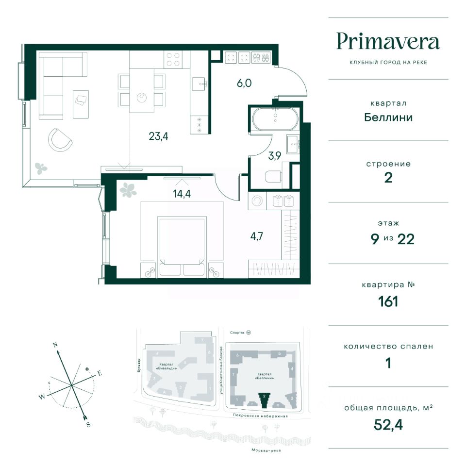 Клубный город на реке Primavera — это современный жилой комплекс премиум-класса, расположенный на первой береговой линии Москвы-реки в экологически чистом районе Покровское-Стрешнево. Под панорамными окнами квартир находится собственный экопарк с продуманной сетью прогулочных дорожек и современными детскими и спортивными площадками. За парком расположена набережная с собственным пляжем и зонами для отдыха. Клубный город на реке Primavera предлагает широкий выбор планировок для различных жизненных сценариев: от просторных однокомнатных квартир до пентхаусов и жилых помещений с террасами и патио. Выберите из 120 вариантов эргономичных планировок стандартного и евроформата. Из каждой квартиры открываются красивые виды на реку с углом обзора в 270 градусов. Дизайнерские лобби предлагают панорамный обзор на благоустроенный двор. Высокие потолки в 6 метров и качественная отделка создают атмосферу, схожую с пятизвездочными отелями. В Primavera есть всё необходимое для комфортной жизни в мегаполисе: • Образование для детей в шаговой доступности: 4 школы, 8 детских садов и развивающие центры с кружками и секциями. • Удобства на расстоянии приятной прогулки: супермаркеты, кафе, рестораны с верандами, салоны красоты, аптеки и многофункциональный центр для шоппинга и развлечений. • Умный дом: автоматизированное бесконтактное управление основными системами доступа и безопасности через мобильное приложение. Клубный город на реке Primavera выгодно сочетает комфорт городской жизни с близостью к природе. Живите в месте, где все создано для вашего удобства!