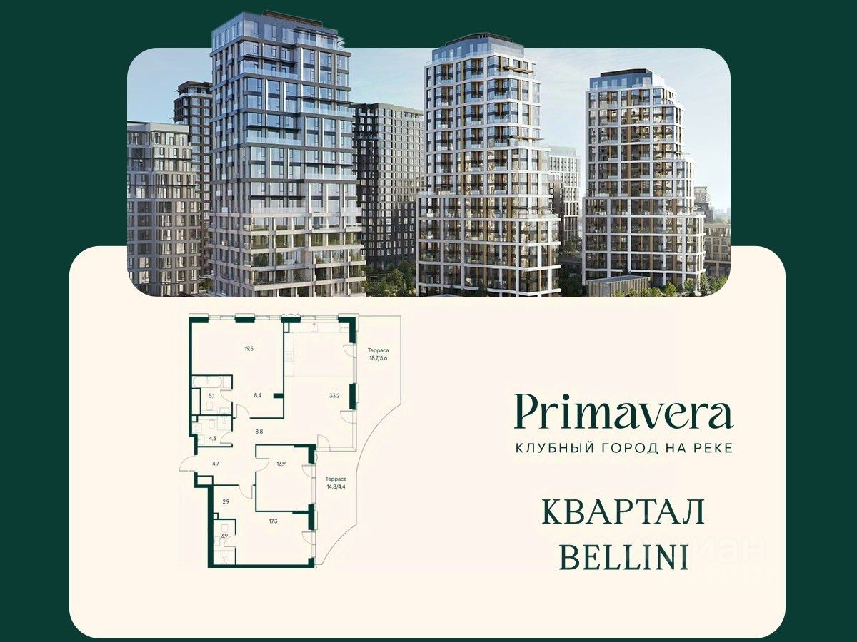 Клубный город на реке Primavera — это респектабельный проект премиум-класса на первой береговой линии Москвы-реки в экологически безупречном районе — Покровское-Стрешнево. Под панорамными окнами квартир расположился собственный экопарк, площадью 12 гектаров с сетью прогулочных дорожек, оборудованный детскими и спортивными площадками, а за ним набережная с собственным пляжем и зонами отдыха. Клубный город на реке Primavera предлагает впечатляющий выбор планировок для любого жизненного сценария: от просторных однокомнатных квартир до пентхаусов и квартир с видовыми террасами или патио. Выбирайте из 120 вариантов эргономичных планировок стандартного и евроформата. В проекте доступны квартиры площадью от 40 до 209 м², в каждой из которых открываются непревзойденные виды на реку, а угол обзора составляет 270 градусов. Из дизайнерских лобби открывается панорамный обзор на зеленый благоустроенный двор. Статусное мебелирование, потолки высотой 6 м и комфортная лаунж-зона отсылают к стилистике высококлассных пятизвездочных отелей. В Primavera есть все, что может предложить мегаполис, здесь все сосредоточено вокруг вас и настроено на ваши желания: - Всестороннее детское развитие в паре шагов от дома: 4 школы, 8 детских садов, развивающие центры с кружками и секциями. - Комфорт мегаполиса на расстоянии приятной прогулки: супермаркеты, кафе, рестораны с верандами на крыше, салоны красоты, аптеки, компании сферы услуг, многофункциональный центр для шоппинга и развлечений. - Умный дом: автоматизированное бесконтактное управление основными системами доступа, инфраструктуры и безопасности через мобильное приложение и специальные метки. Клубный город на реке Primavera выгодно отличается близостью к природе, совмещенной с насыщенной инфраструктурой.