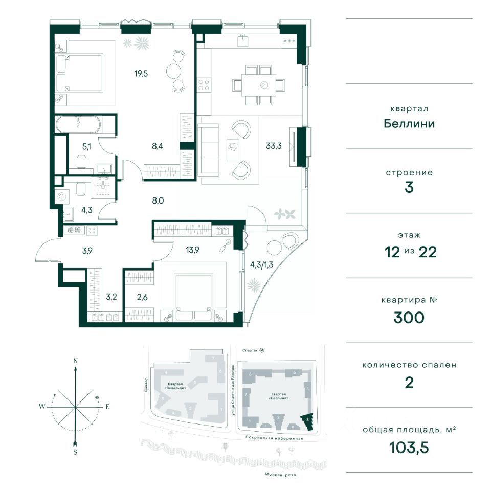 Общая площадь103,5 м²
