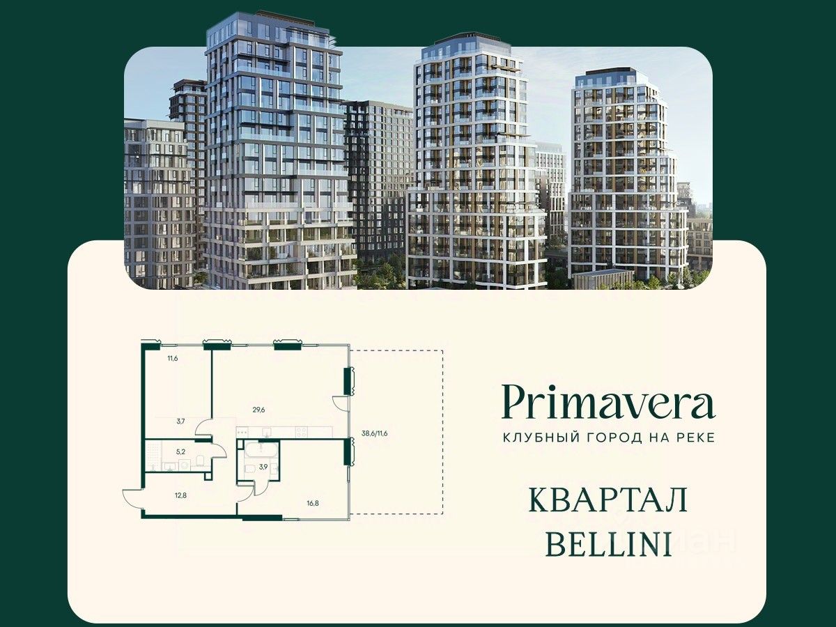 Клубный город на реке Primavera — это современный жилой комплекс премиум-класса, расположенный на первой береговой линии Москвы-реки в экологически чистом районе Покровское-Стрешнево. Под панорамными окнами квартир находится собственный экопарк с продуманной сетью прогулочных дорожек и современными детскими и спортивными площадками. За парком расположена набережная с собственным пляжем и зонами для отдыха. Клубный город на реке Primavera предлагает широкий выбор планировок для различных жизненных сценариев: от просторных однокомнатных квартир до пентхаусов и жилых помещений с террасами и патио. Выберите из 120 вариантов эргономичных планировок стандартного и евроформата. Из каждой квартиры открываются красивые виды на реку с углом обзора в 270 градусов. Дизайнерские лобби предлагают панорамный обзор на благоустроенный двор. Высокие потолки в 6 метров и качественная отделка создают атмосферу, схожую с пятизвездочными отелями. В Primavera есть всё необходимое для комфортной жизни в мегаполисе: • Образование для детей в шаговой доступности: 4 школы, 8 детских садов и развивающие центры с кружками и секциями. • Удобства на расстоянии приятной прогулки: супермаркеты, кафе, рестораны с верандами, салоны красоты, аптеки и многофункциональный центр для шоппинга и развлечений. • Умный дом: автоматизированное бесконтактное управление основными системами доступа и безопасности через мобильное приложение. Клубный город на реке Primavera выгодно сочетает комфорт городской жизни с близостью к природе. Живите в месте, где все создано для вашего удобства!