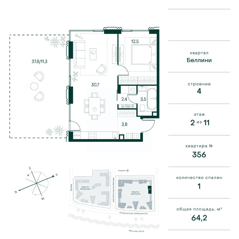 Клубный город на реке "Примавера" — это современный жилой комплекс премиум-класса, расположенный на первой береговой линии Москвы-реки в экологически чистом районе Покровское-Стрешнево. Под панорамными окнами квартир находится собственный экопарк с продуманной сетью прогулочных дорожек и современными детскими и спортивными площадками. За парком расположена набережная с собственным пляжем и зонами для отдыха. Клубный город на реке "Примавера" предлагает широкий выбор планировок для различных жизненных сценариев: от просторных однокомнатных квартир до пентхаусов и жилых помещений с террасами и патио. Выберите из 120 вариантов эргономичных планировок стандартного и евроформата. Из каждой квартиры открываются красивые виды на реку с углом обзора в 270 градусов. Дизайнерские лобби предлагают панорамный обзор на благоустроенный двор. Высокие потолки в 6 метров и качественная отделка создают атмосферу, схожую с пятизвездочными отелями. В "Примавера" есть всё необходимое для комфортной жизни в мегаполисе: • Образование для детей в шаговой доступности: 4 школы, 8 детских садов и развивающие центры с кружками и секциями. • Удобства на расстоянии приятной прогулки: супермаркеты, кафе, рестораны с верандами, салоны красоты, аптеки и многофункциональный центр для шоппинга и развлечений. • Умный дом: автоматизированное бесконтактное управление основными системами доступа и безопасности через мобильное приложение. Клубный город на реке "Примавера" выгодно сочетает комфорт городской жизни с близостью к природе. Живите в месте, где все создано для вашего удобства!