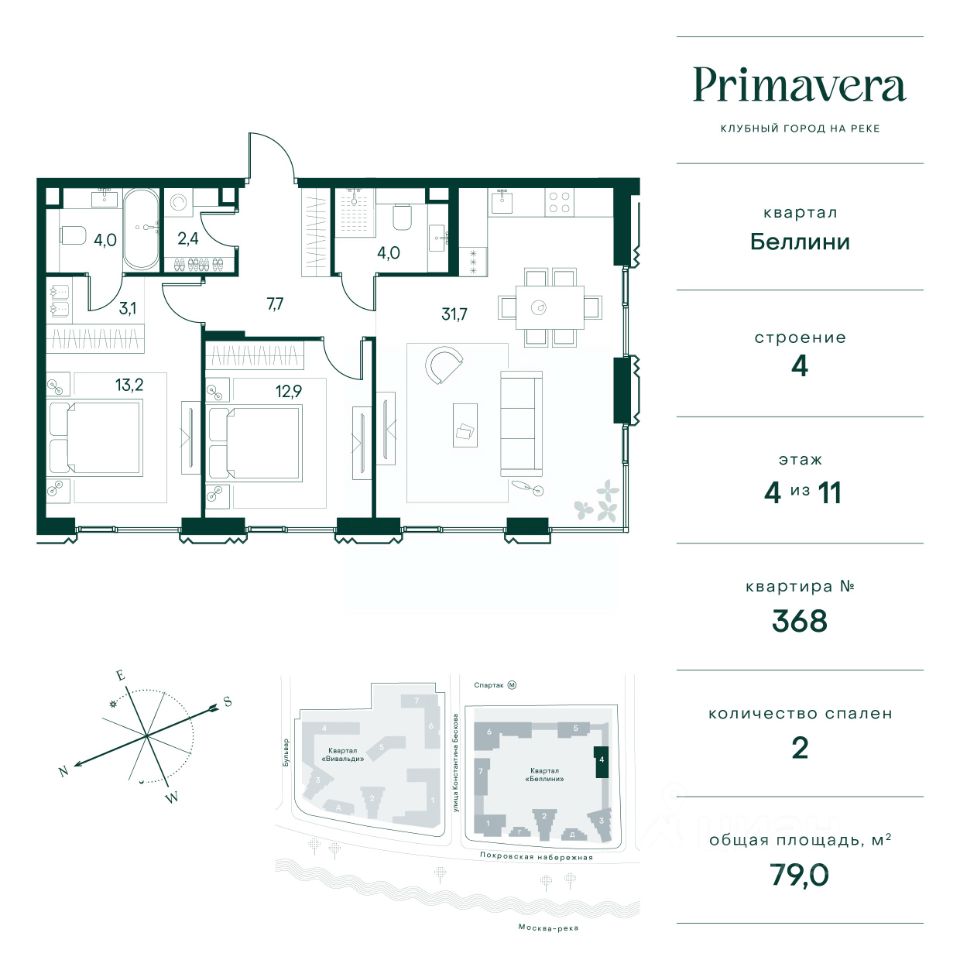 Клубный город на реке Primavera — это респектабельный проект премиум-класса на первой береговой линии Москвы-реки в экологически безупречном районе — Покровское-Стрешнево. Под панорамными окнами квартир расположился собственный экопарк, площадью 12 гектаров с сетью прогулочных дорожек, оборудованный детскими и спортивными площадками, а за ним набережная с собственным пляжем и зонами отдыха. Клубный город на реке Primavera предлагает впечатляющий выбор планировок для любого жизненного сценария: от просторных однокомнатных квартир до пентхаусов и квартир с видовыми террасами или патио. Выбирайте из 120 вариантов эргономичных планировок стандартного и евроформата. В проекте доступны квартиры площадью от 40 до 209 м², в каждой из которых открываются непревзойденные виды на реку, а угол обзора составляет 270 градусов. Из дизайнерских лобби открывается панорамный обзор на зеленый благоустроенный двор. Статусное мебелирование, потолки высотой 6 м и комфортная лаунж-зона отсылают к стилистике высококлассных пятизвездочных отелей. В Primavera есть все, что может предложить мегаполис, здесь все сосредоточено вокруг вас и настроено на ваши желания: - Всестороннее детское развитие в паре шагов от дома: 4 школы, 8 детских садов, развивающие центры с кружками и секциями. - Комфорт мегаполиса на расстоянии приятной прогулки: супермаркеты, кафе, рестораны с верандами на крыше, салоны красоты, аптеки, компании сферы услуг, многофункциональный центр для шоппинга и развлечений. - Умный дом: автоматизированное бесконтактное управление основными системами доступа, инфраструктуры и безопасности через мобильное приложение и специальные метки. Клубный город на реке Primavera выгодно отличается близостью к природе, совмещенной с насыщенной инфраструктурой.