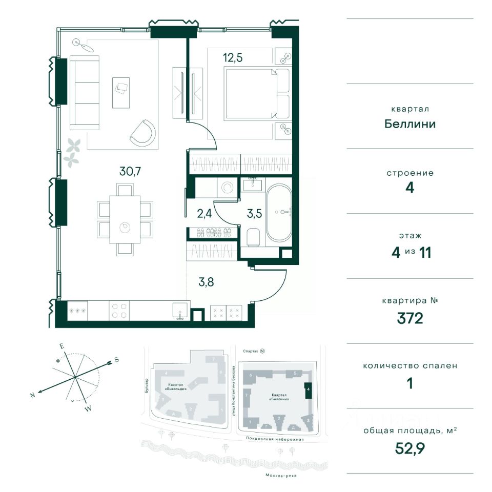 Общая площадь52,9 м²