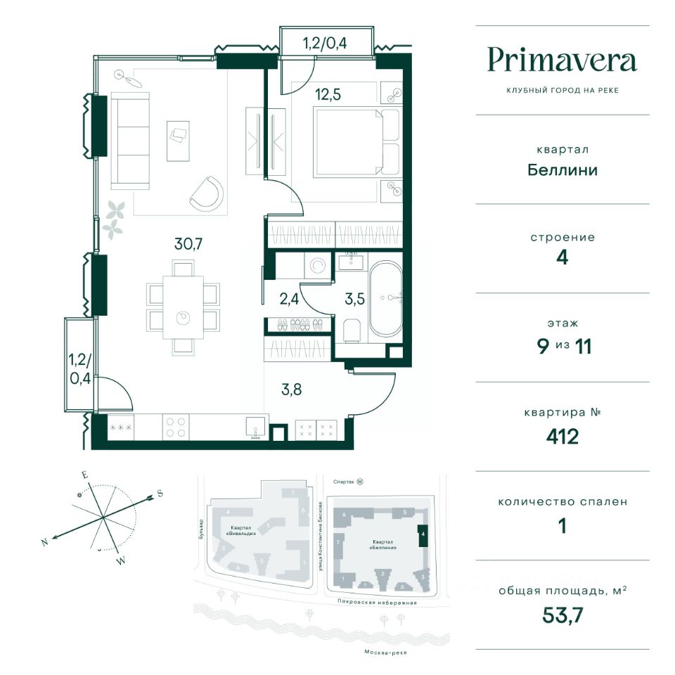 Клубный город на реке Primavera — это респектабельный проект премиум-класса на первой береговой линии Москвы-реки в экологически безупречном районе — Покровское-Стрешнево. Под панорамными окнами квартир расположился собственный экопарк, площадью 12 гектаров с сетью прогулочных дорожек, оборудованный детскими и спортивными площадками, а за ним набережная с собственным пляжем и зонами отдыха. Клубный город на реке Primavera предлагает впечатляющий выбор планировок для любого жизненного сценария: от просторных однокомнатных квартир до пентхаусов и квартир с видовыми террасами или патио. Выбирайте из 120 вариантов эргономичных планировок стандартного и евроформата. В проекте доступны квартиры площадью от 40 до 209 м², в каждой из которых открываются непревзойденные виды на реку, а угол обзора составляет 270 градусов. Из дизайнерских лобби открывается панорамный обзор на зеленый благоустроенный двор. Статусное мебелирование, потолки высотой 6 м и комфортная лаунж-зона отсылают к стилистике высококлассных пятизвездочных отелей. В Primavera есть все, что может предложить мегаполис, здесь все сосредоточено вокруг вас и настроено на ваши желания: - Всестороннее детское развитие в паре шагов от дома: 4 школы, 8 детских садов, развивающие центры с кружками и секциями. - Комфорт мегаполиса на расстоянии приятной прогулки: супермаркеты, кафе, рестораны с верандами на крыше, салоны красоты, аптеки, компании сферы услуг, многофункциональный центр для шоппинга и развлечений. - Умный дом: автоматизированное бесконтактное управление основными системами доступа, инфраструктуры и безопасности через мобильное приложение и специальные метки. Клубный город на реке Primavera выгодно отличается близостью к природе, совмещенной с насыщенной инфраструктурой.