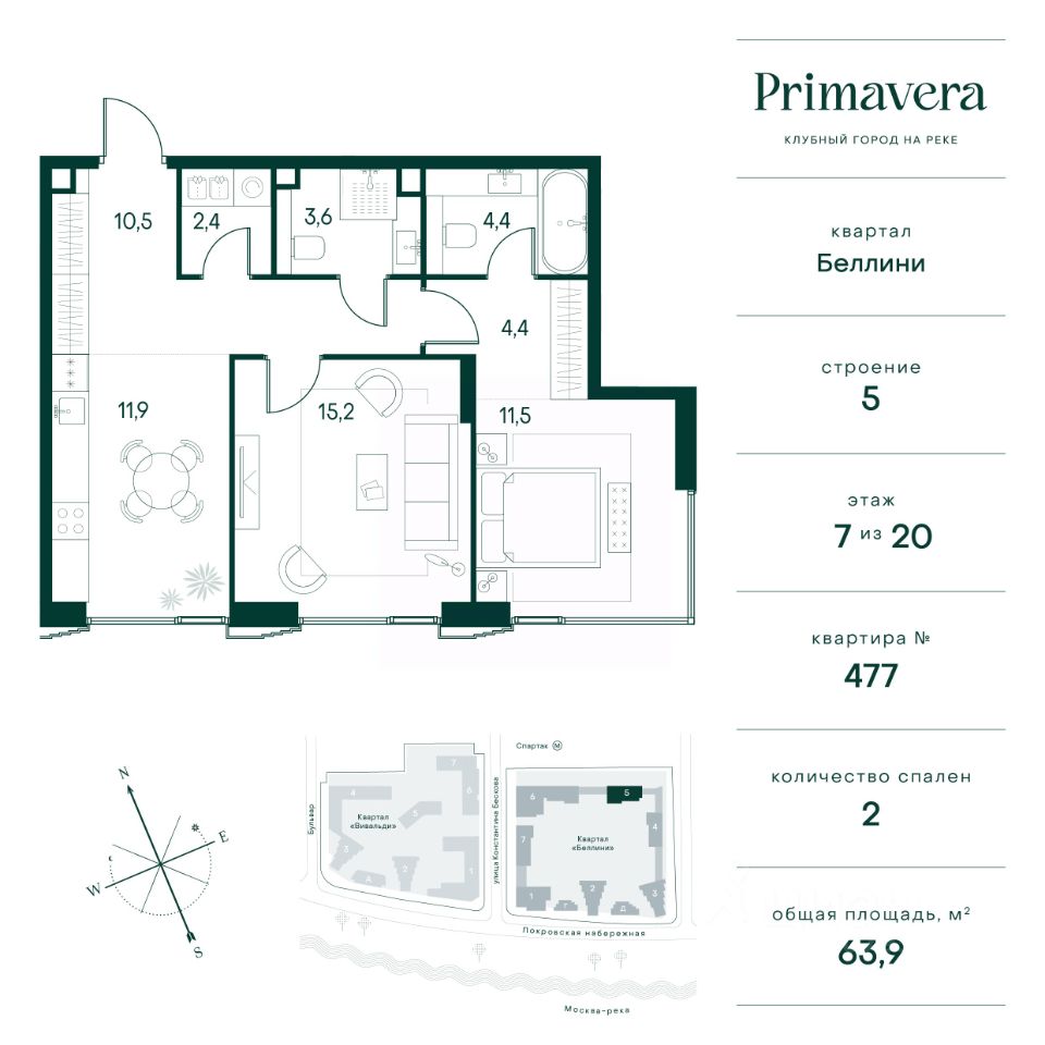 Клубный город на реке Primavera — это респектабельный проект премиум-класса на первой береговой линии Москвы-реки в экологически безупречном районе — Покровское-Стрешнево. Под панорамными окнами квартир расположился собственный экопарк, площадью 12 гектаров с сетью прогулочных дорожек, оборудованный детскими и спортивными площадками, а за ним набережная с собственным пляжем и зонами отдыха. Клубный город на реке Primavera предлагает впечатляющий выбор планировок для любого жизненного сценария: от просторных однокомнатных квартир до пентхаусов и квартир с видовыми террасами или патио. Выбирайте из 120 вариантов эргономичных планировок стандартного и евроформата. В проекте доступны квартиры площадью от 40 до 209 м², в каждой из которых открываются непревзойденные виды на реку, а угол обзора составляет 270 градусов. Из дизайнерских лобби открывается панорамный обзор на зеленый благоустроенный двор. Статусное мебелирование, потолки высотой 6 м и комфортная лаунж-зона отсылают к стилистике высококлассных пятизвездочных отелей. В Primavera есть все, что может предложить мегаполис, здесь все сосредоточено вокруг вас и настроено на ваши желания: - Всестороннее детское развитие в паре шагов от дома: 4 школы, 8 детских садов, развивающие центры с кружками и секциями. - Комфорт мегаполиса на расстоянии приятной прогулки: супермаркеты, кафе, рестораны с верандами на крыше, салоны красоты, аптеки, компании сферы услуг, многофункциональный центр для шоппинга и развлечений. - Умный дом: автоматизированное бесконтактное управление основными системами доступа, инфраструктуры и безопасности через мобильное приложение и специальные метки. Клубный город на реке Primavera выгодно отличается близостью к природе, совмещенной с насыщенной инфраструктурой.