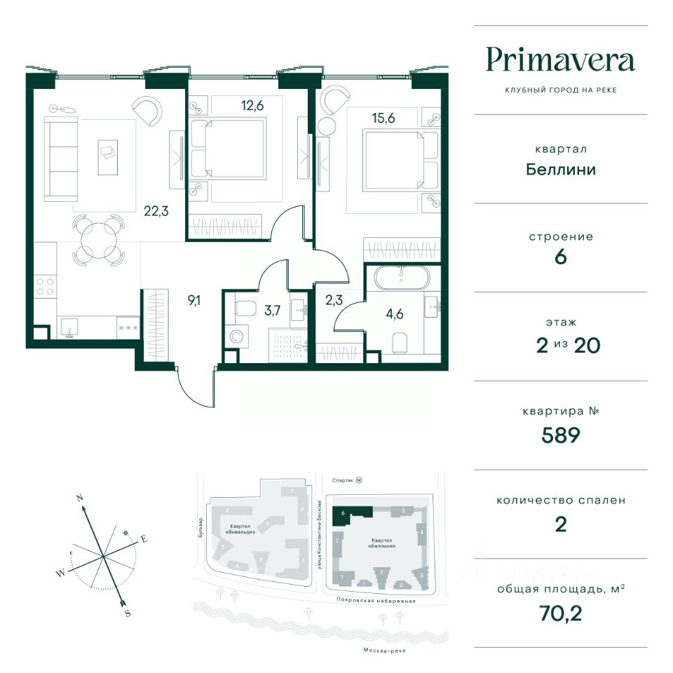 Клубный город на реке Primavera — это современный жилой комплекс премиум-класса, расположенный на первой береговой линии Москвы-реки в экологически чистом районе Покровское-Стрешнево. Под панорамными окнами квартир находится собственный экопарк с продуманной сетью прогулочных дорожек и современными детскими и спортивными площадками. За парком расположена набережная с собственным пляжем и зонами для отдыха. Клубный город на реке Primavera предлагает широкий выбор планировок для различных жизненных сценариев: от просторных однокомнатных квартир до пентхаусов и жилых помещений с террасами и патио. Выберите из 120 вариантов эргономичных планировок стандартного и евроформата. Из каждой квартиры открываются красивые виды на реку с углом обзора в 270 градусов. Дизайнерские лобби предлагают панорамный обзор на благоустроенный двор. Высокие потолки в 6 метров и качественная отделка создают атмосферу, схожую с пятизвездочными отелями. В Primavera есть всё необходимое для комфортной жизни в мегаполисе: • Образование для детей в шаговой доступности: 4 школы, 8 детских садов и развивающие центры с кружками и секциями. • Удобства на расстоянии приятной прогулки: супермаркеты, кафе, рестораны с верандами, салоны красоты, аптеки и многофункциональный центр для шоппинга и развлечений. • Умный дом: автоматизированное бесконтактное управление основными системами доступа и безопасности через мобильное приложение. Клубный город на реке Primavera выгодно сочетает комфорт городской жизни с близостью к природе. Живите в месте, где все создано для вашего удобства!